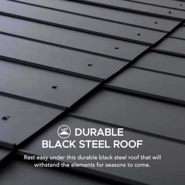 - Heavy-Duty Steel Roof: 29-gauge Tudor Brown galvanized steel roof provides dent and corrosion resistance