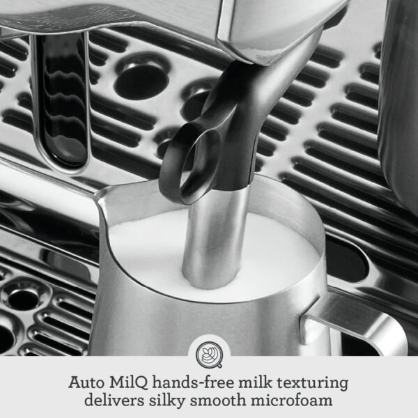 Select from the full menu of café favorites The touch screen, automated technology allows you to select from classics like Latte, Espresso, Americano, Flat White and Cappuccino. Coffee without compromise You no longer need to compromise when making coffee automatically. With automation at every stage, full-bodied flavor and silky milk texture at the touch of your fingertips, the next generation super automatic has arrived. Power: 1650 Watts. A barista in the comfort of your home To get that velvety texture in your milk you need the right steam pressure to draw in the air and create thousands of tiny bubbles. That’s why we created the automatic steam wand for the Oracle Touch, designed to turn your milk into a silky smooth micro-foam, essential for Latte art. Customized to taste You can easily adjust the coffee strength, milk texture and temperature to suit your taste. Personalize your own coffee and save as a favorite with a unique name and picture. Create up to 8 personalized coffees.